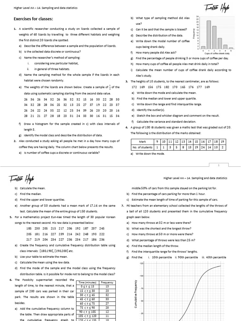 the first distinct 20 lizards she spotted. e) Write down the modal number of coffee