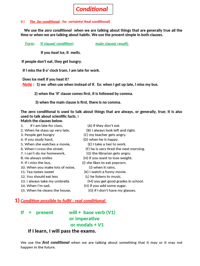 Note : 1) we often use when instead of if. Ex: when I get up late, I miss my bus.
