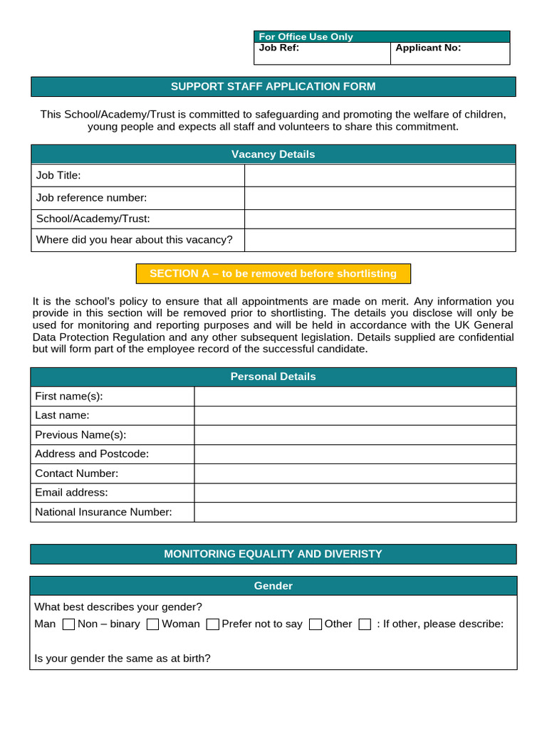 It is the school’s policy to ensure that all appointments are made on merit. Any information you