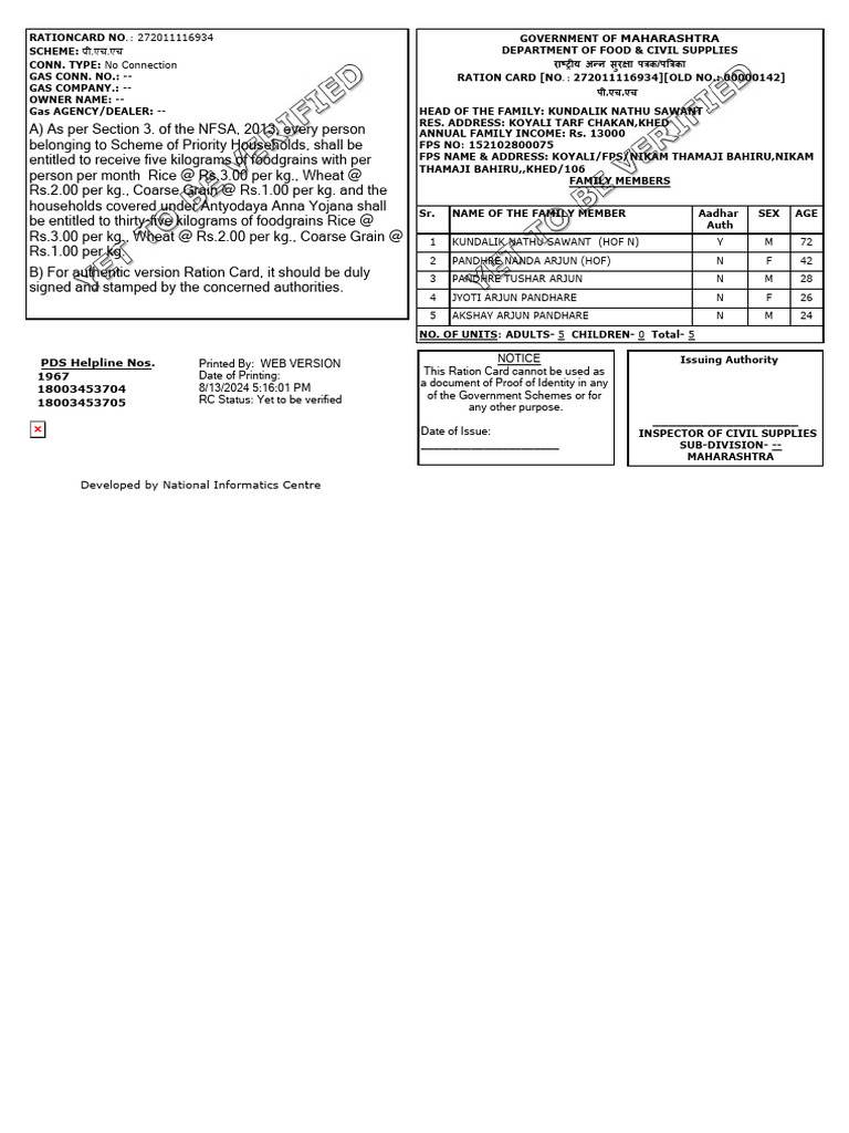 B) For authentic version Ration Card, it should be duly 3 PANDHRE TUSHAR ARJUN N M 28