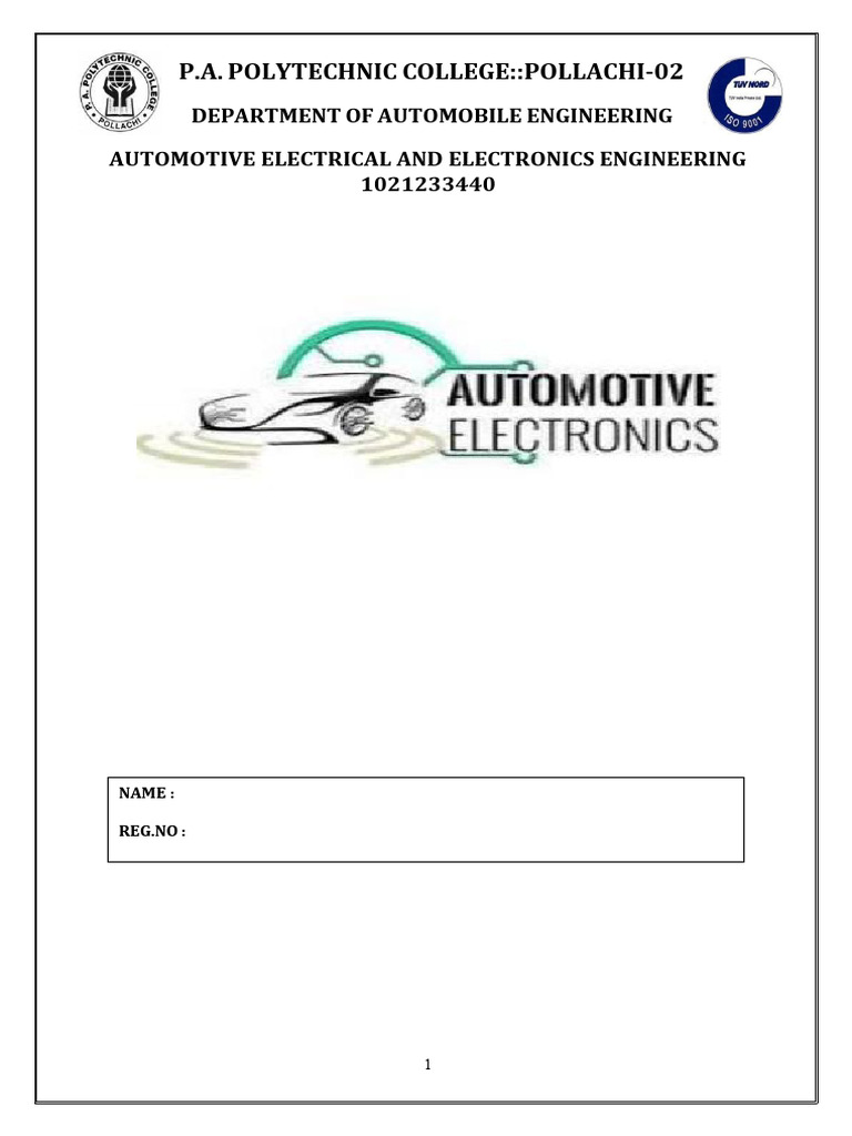 AUTOMOTIVE ELECTRICAL AND ELECTRONICS ENGINEERING