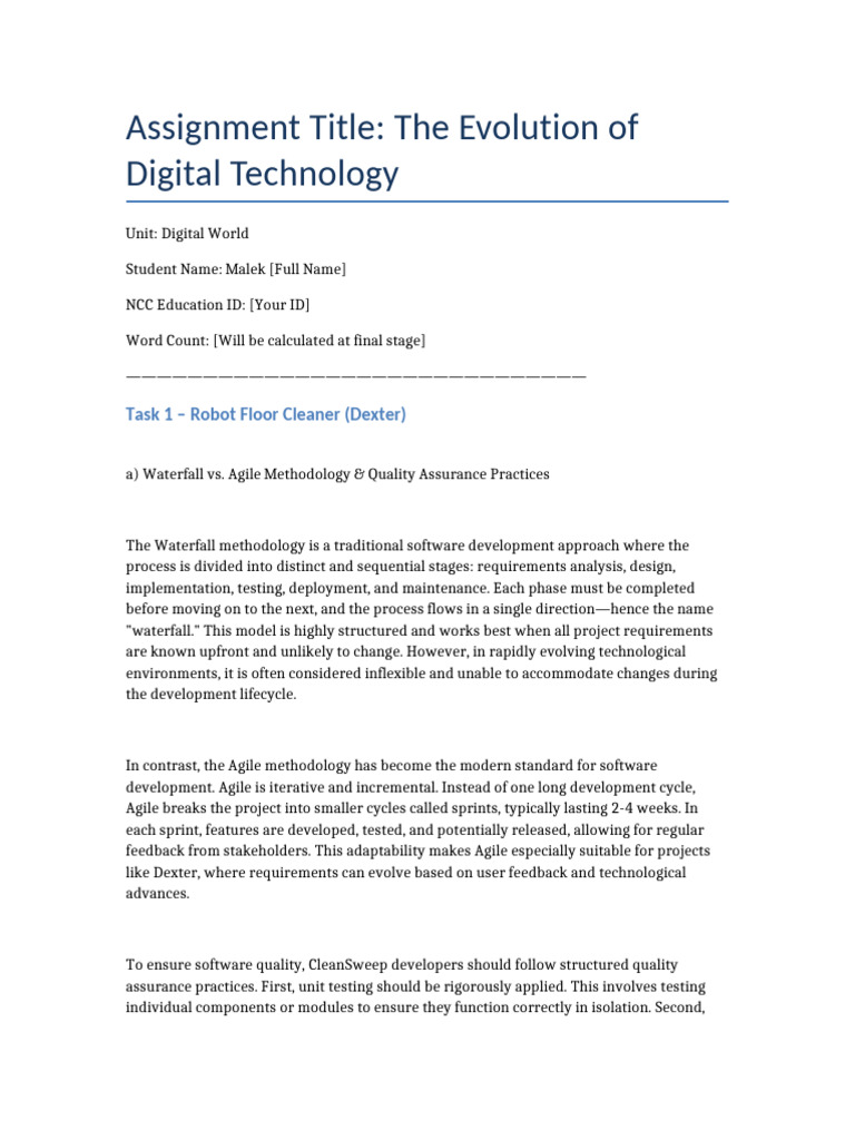 a) Waterfall vs. Agile Methodology & Quality Assurance Practices