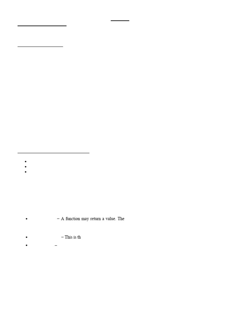 Return Type − A function may return a value. The return_type is the data type of the value the function