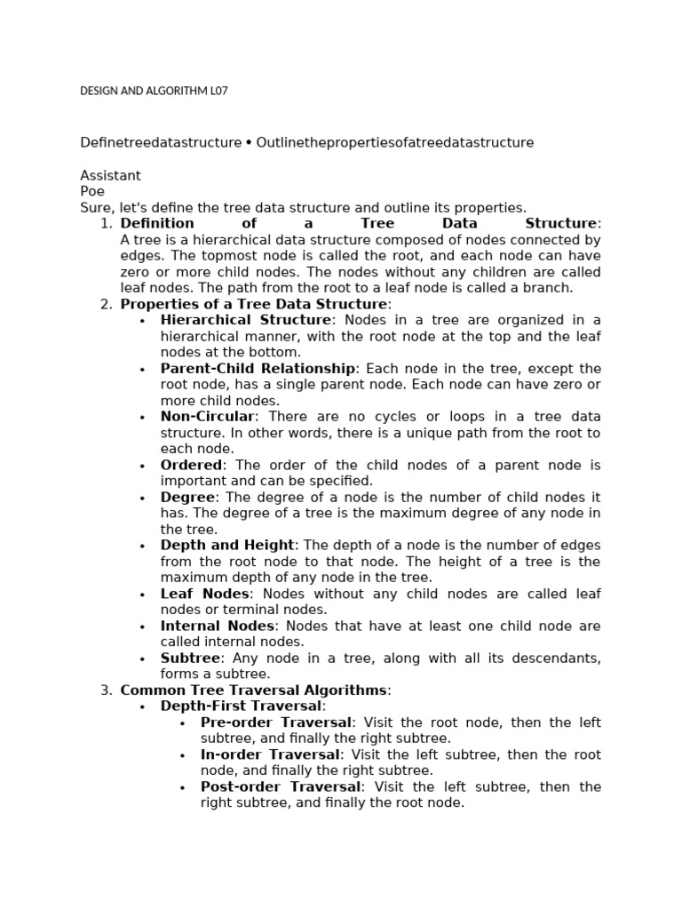 Definetreedatastructure Outlinethepropertiesofatreedatastructure
