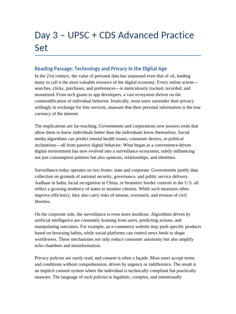 Day 3 – UPSC + CDS Advanced Practice