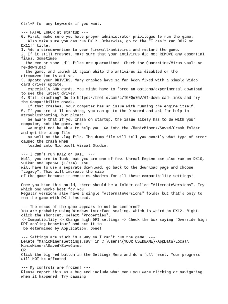 we might not be able to help you. Go into the /ManicMiners/Saved/Crash folder