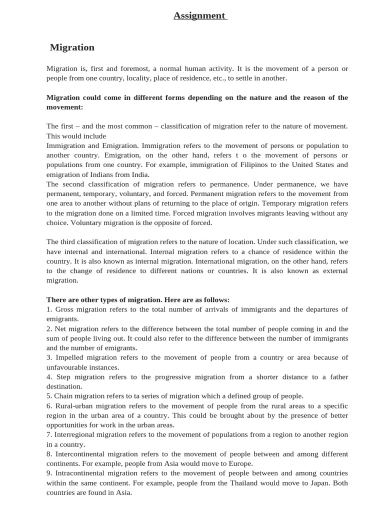another country. Emigration, on the other hand, refers t o the movement of persons or