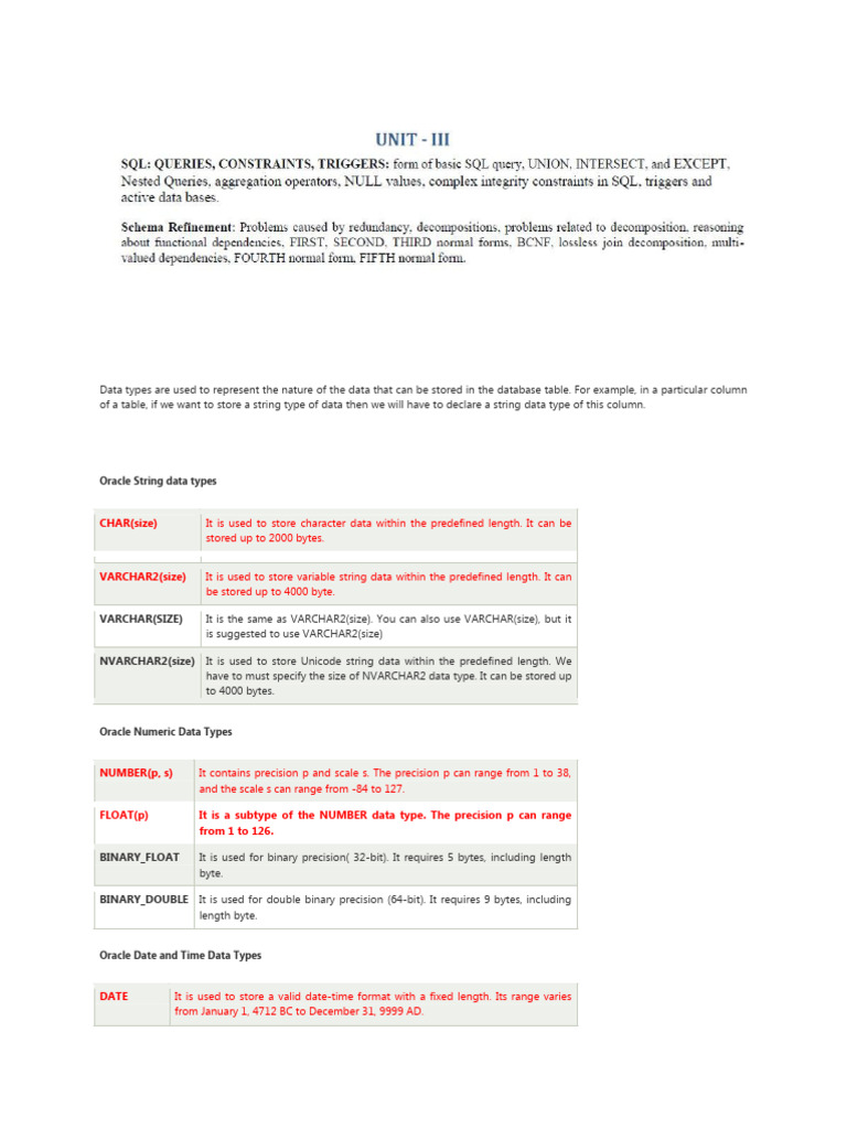 Oracle Data Types