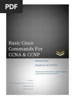 Created on: Apr 1, 2010 9:09 PM by yasser ramzy - Last Modified: Apr 1, 2010 9:09 PM by yasser ramzy here are basic cisco router configuratuion commands you will need to fully understand before going to Routing protocols topics: Basic configuration Router>ena Router#show version Router#show start Router#show run Router#show history Router#show clock Router#show users Router#show flash Router#show tech-support Router#show interfaces Router#show ip interface brief Router#copy run start Router#ping Router#reload Router#config t Router(config)#ip host yasser 10.0.0.100 Router(config)#interface fastEthernet 0/0 Router(config-if)#ip address 10.0.0.1 255.0.0.0 Router(config-if)#speed auto Router(config-if)#duplex auto Router(config-if)#no shutdown Router(config-if)#exit Secure Router & Setting Telnet connection Router(config)#enable password 1111 Router(config)#no enable password Router(config)#enable secret 1111 Router(config)#line console 0 Router(config-line)#password 2222 Router(config-line)#login Router(config-line)#exit Router(config)#line vty 0 4 Router(config-line)#password 3333 Router(config-line)#login Router(config-line)#exit Router(config)#service password-encryption Router(config)#banner motd # dont login # Router(config)#username yasser password 2222 Router(config)#username yasserramzy secret 2222 Router(config)#username yasserauda privilege 15 password 2222 Router(config)#username yasserramzyauda privilege 15 secret 2222 Router(config)#no ip domain-lookup Cisco DISCOVERY PROTOCOL Router(config)#cdp run Router#show cdp neighbors Capability Codes: R - Router, T - Trans Bridge, B - Source Route Bridge S - Switch, H - Host, I - IGMP, r - Repeater, P - Phone