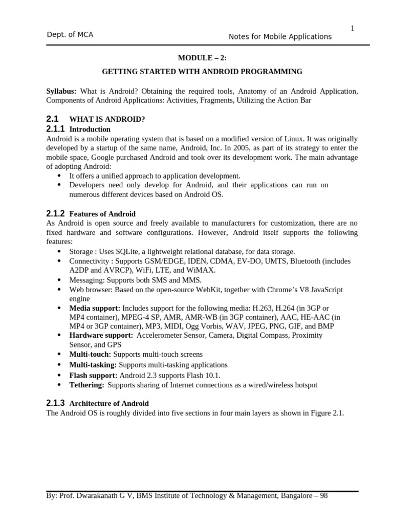 Syllabus: What is Android? Obtaining the required tools, Anatomy of an Android Application,