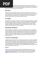 such as board operations, executive compensation, compliance practices, and shareholder engagement. Management uses