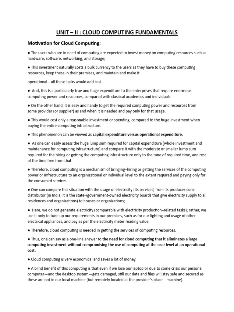UNIT – II : CLOUD COMPUTING FUNDAMENTALS