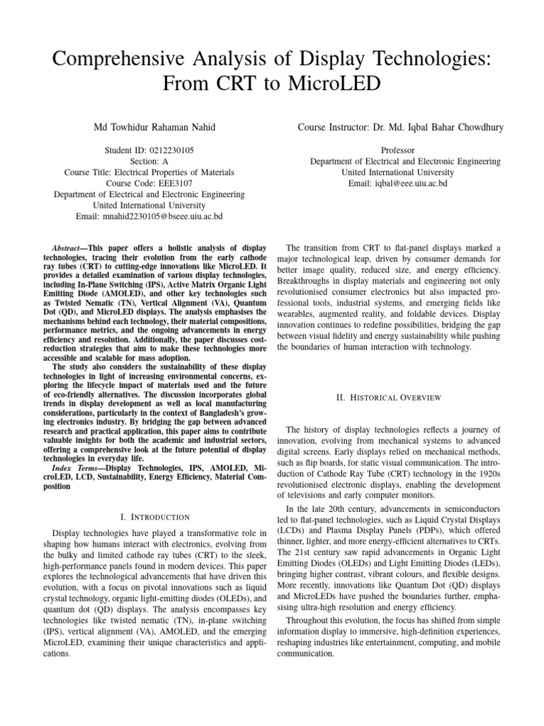 Display technologies have played a transformative role in (LCDs) and Plasma Display Panels (PDPs), which offered