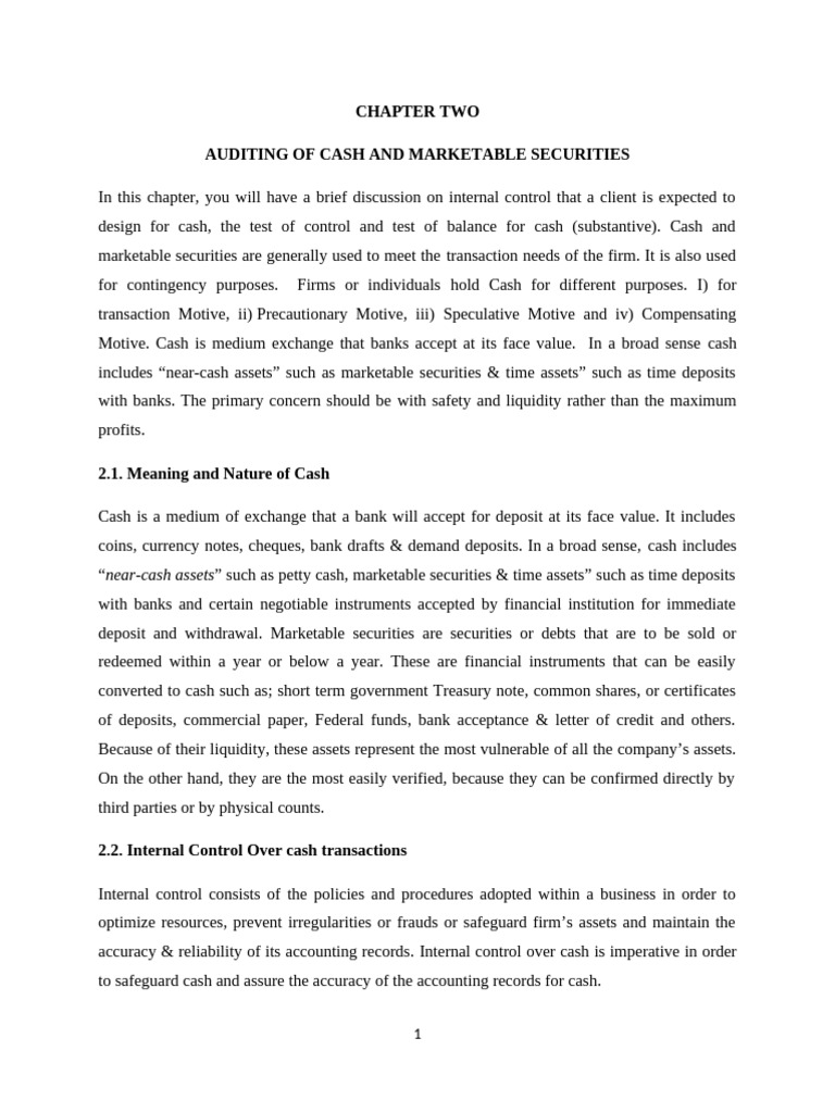 most liquid and tempted to miss appropriation and embezzlement. Therefore auditors devotes a