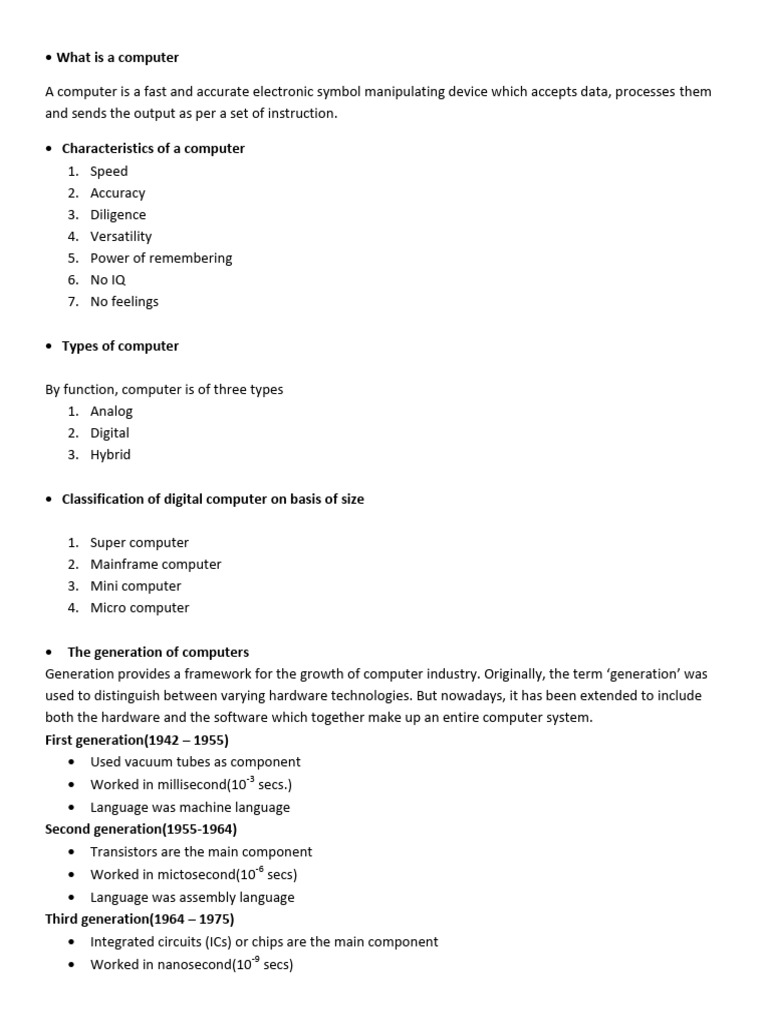 A computer is a fast and accurate electronic symbol manipulating device which accepts data, processes them