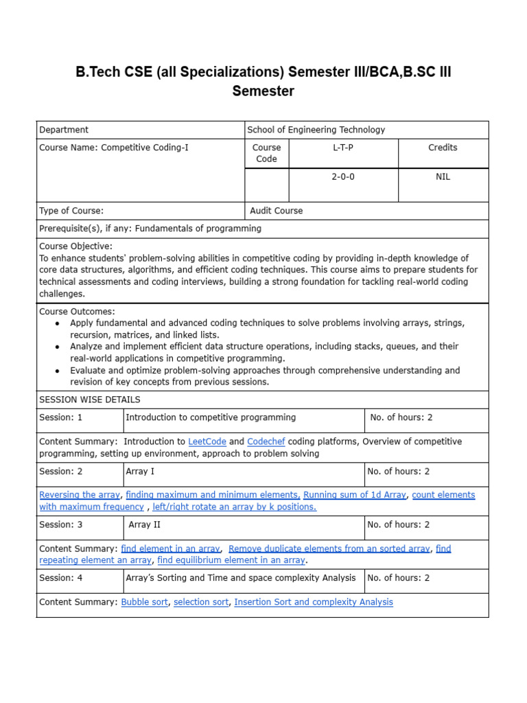 Course Name: Competitive Coding-I Course L-T-P Credits