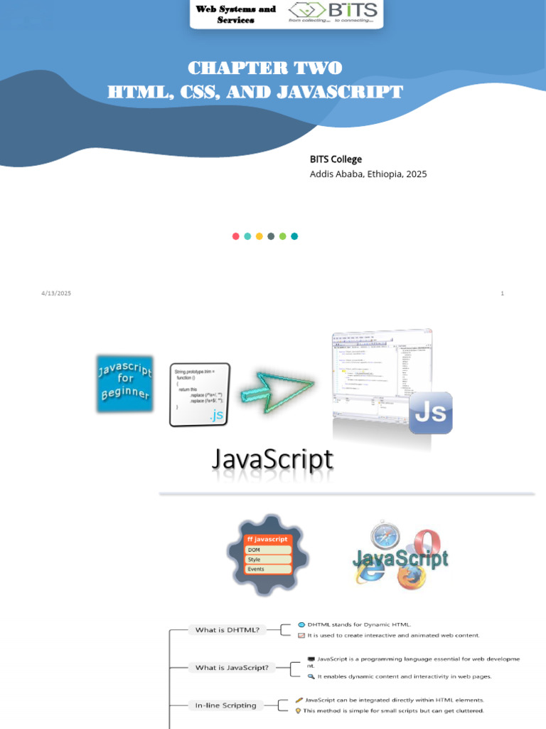• DHTML = HTML + CSS + JavaScript
