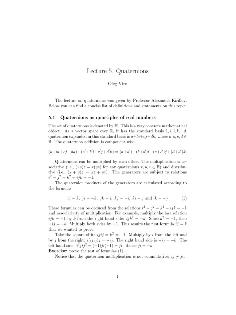 The lecture on quaternions was given by Professor Alexander Kirillov.