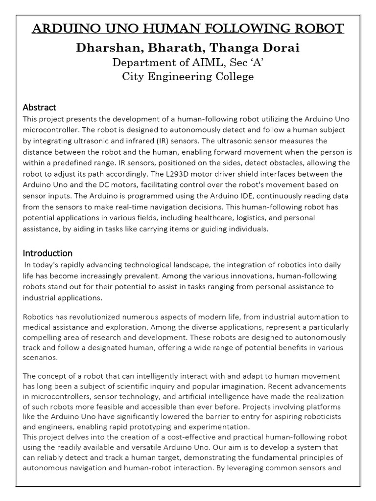 This project presents the development of a human-following robot utilizing the Arduino Uno