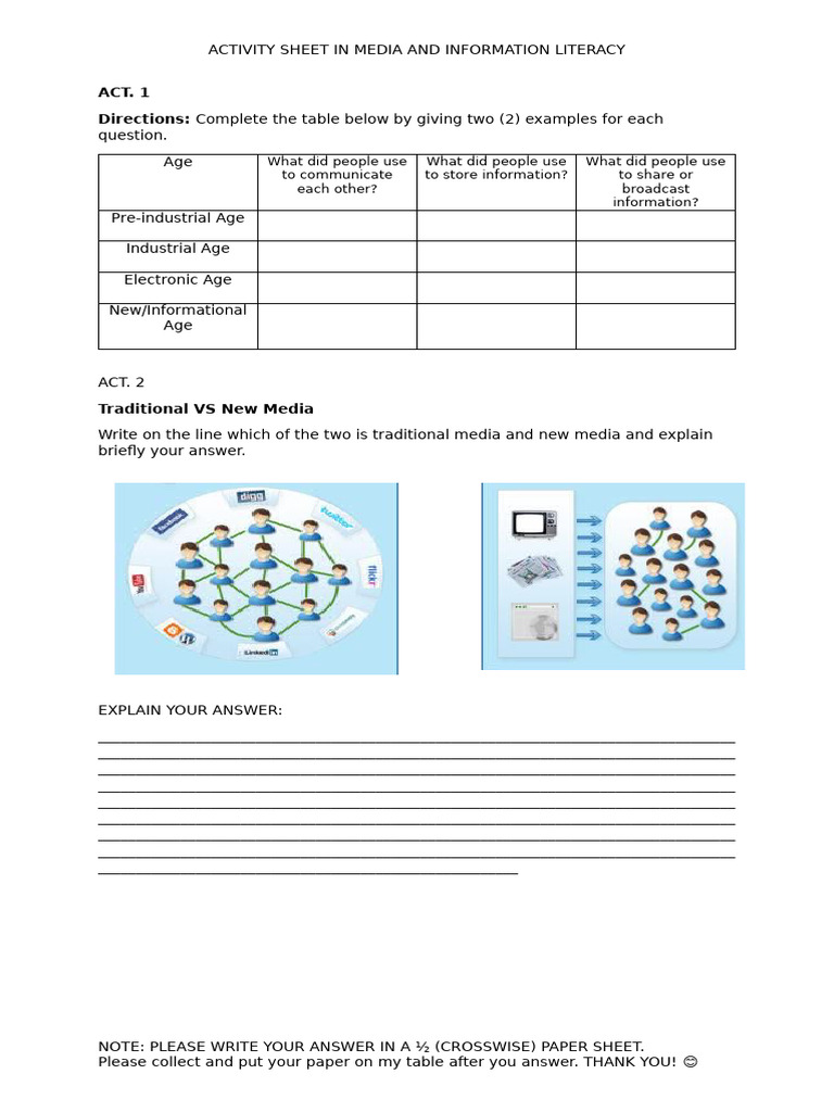 ACTIVITY SHEET IN MEDIA AND INFORMATION LITERACY