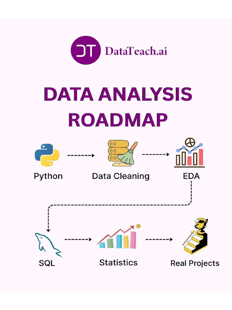 The document outlines an 8-week roadmap for learning data analysis, focusing on Python, SQL, and statistics. Each week includes specific topics, daily timetables, and mini-projects to reinforce learning. The final week emphasizes creating a GitHub portfolio and preparing for interviews.