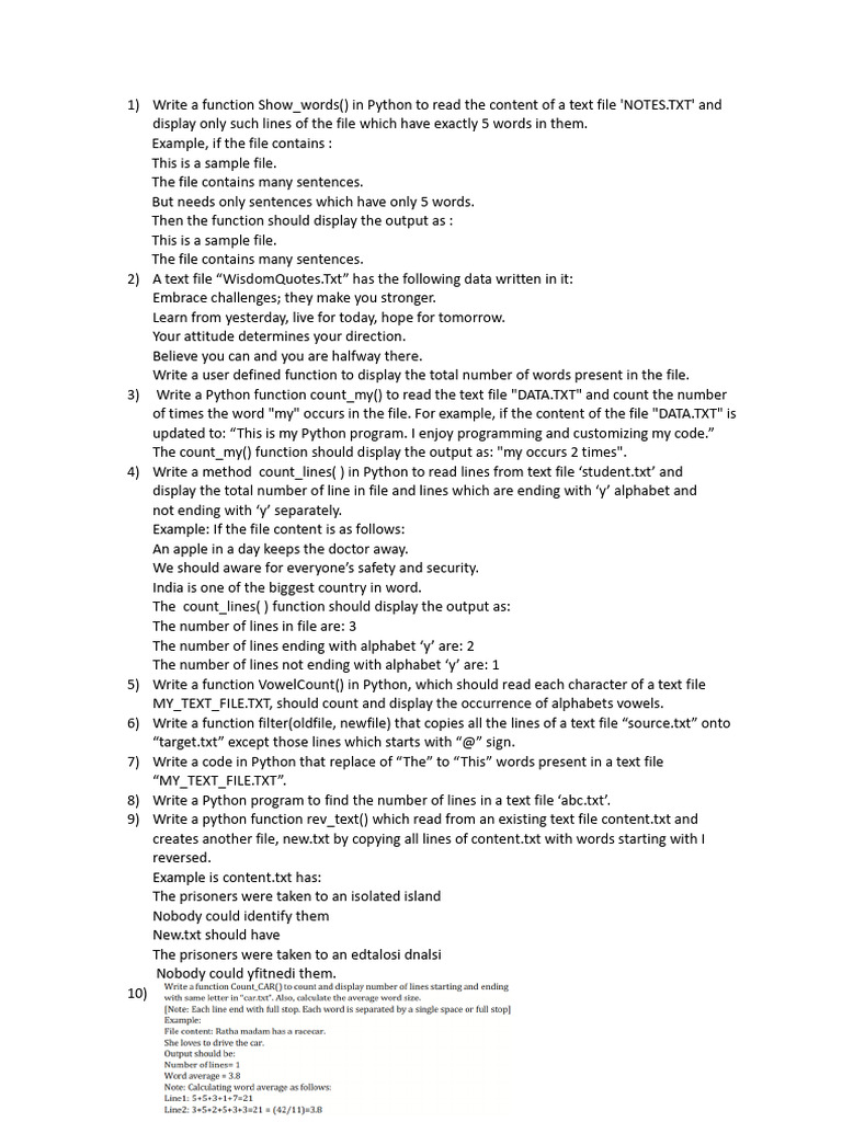 1) Write a function Show_words() in Python to read the content of a text file 'NOTES.