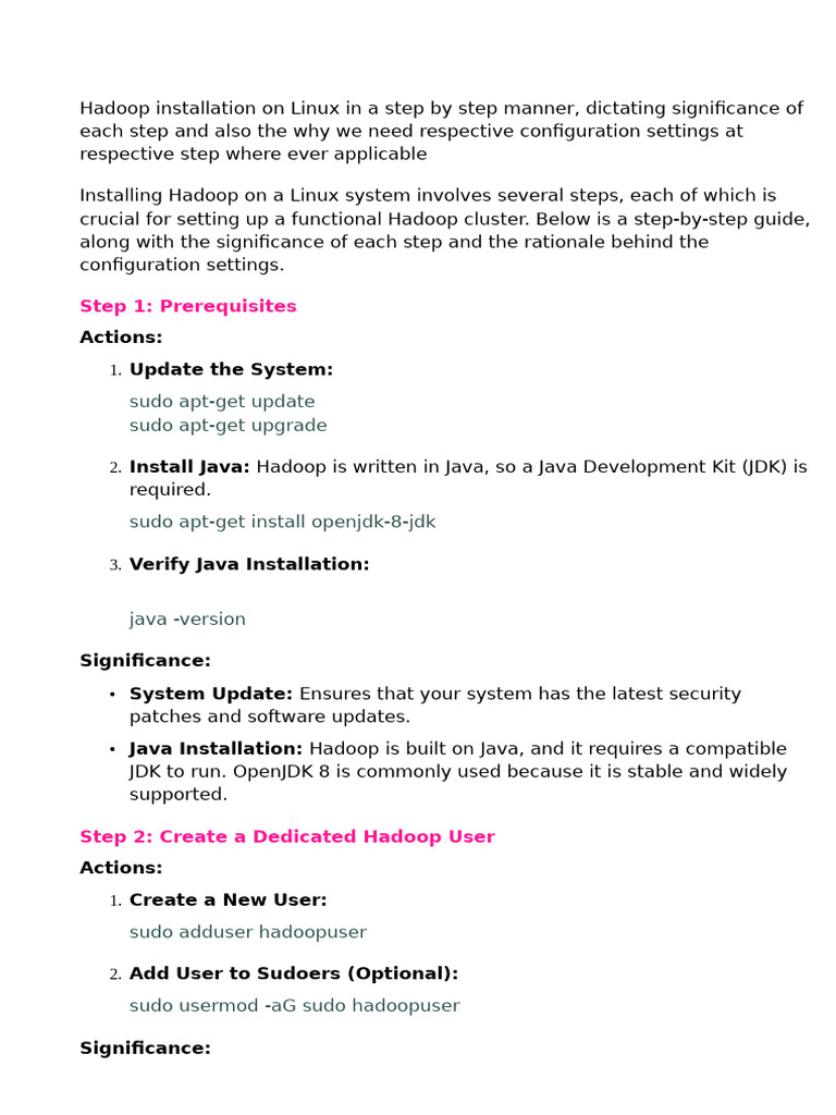 • Scalability: Proper configuration ensures that Hadoop can scale