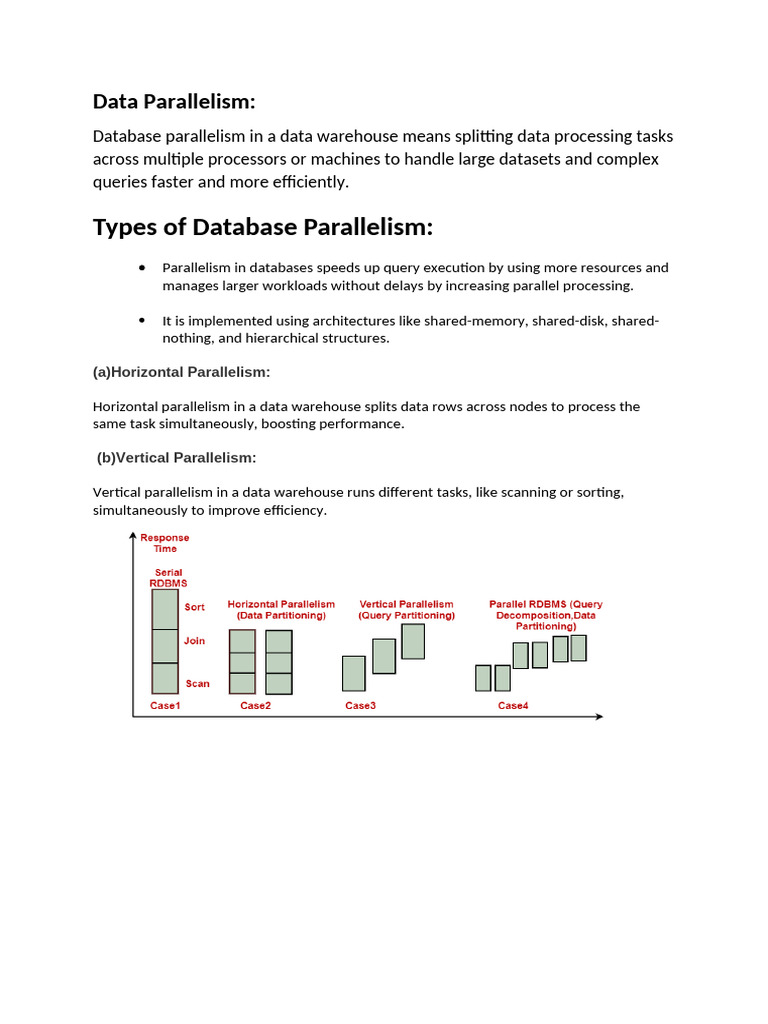 Vertical parallelism in a data warehouse runs different tasks, like scanning or sorting,