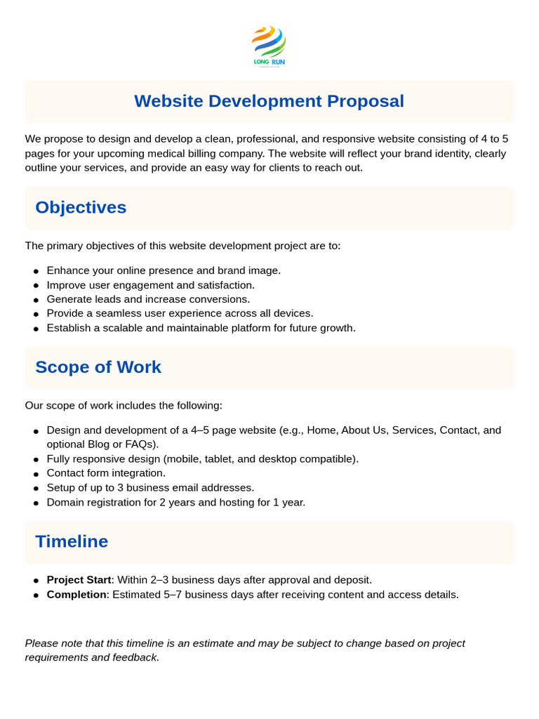 We propose to design and develop a clean, professional, and responsive website consisting of 4 to 5