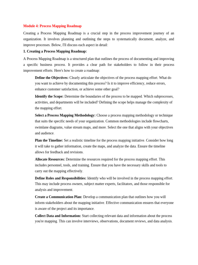 Creating a Process Mapping Roadmap is a crucial step in the process improvement journey of an