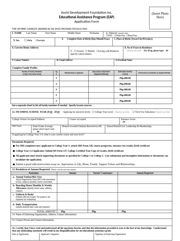 12. INCOMING SCHOOL YEAR 20 ## - 20 ## Applying for (encircle level): ☐ College Year Level Choose an item. ☐ Tech-Voc Education Choose an item.