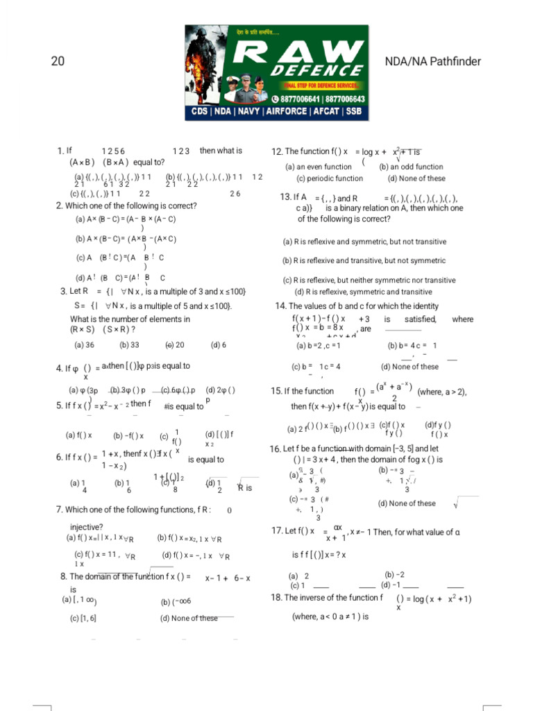(a) reflexive (b) symmetric 30. Find the value of f f [ (x , x ), ( x , x 6, if n = 3.