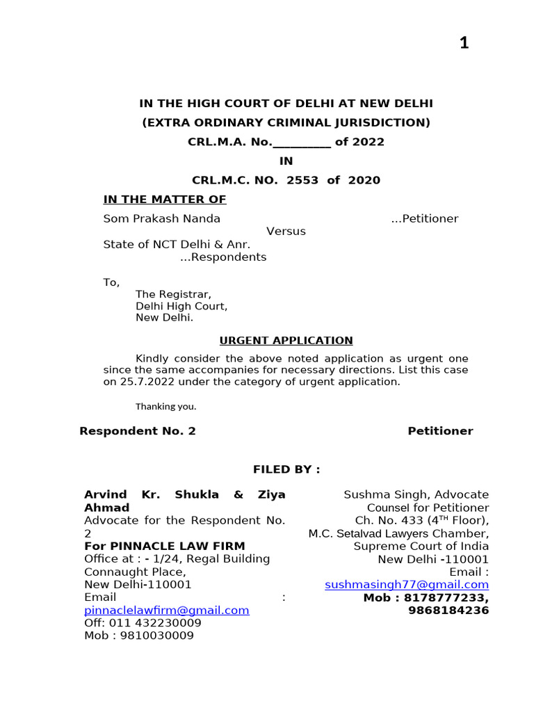 I, Som Prakash Nanda S/o Late Sh. Kanhaiya Lal aged about __