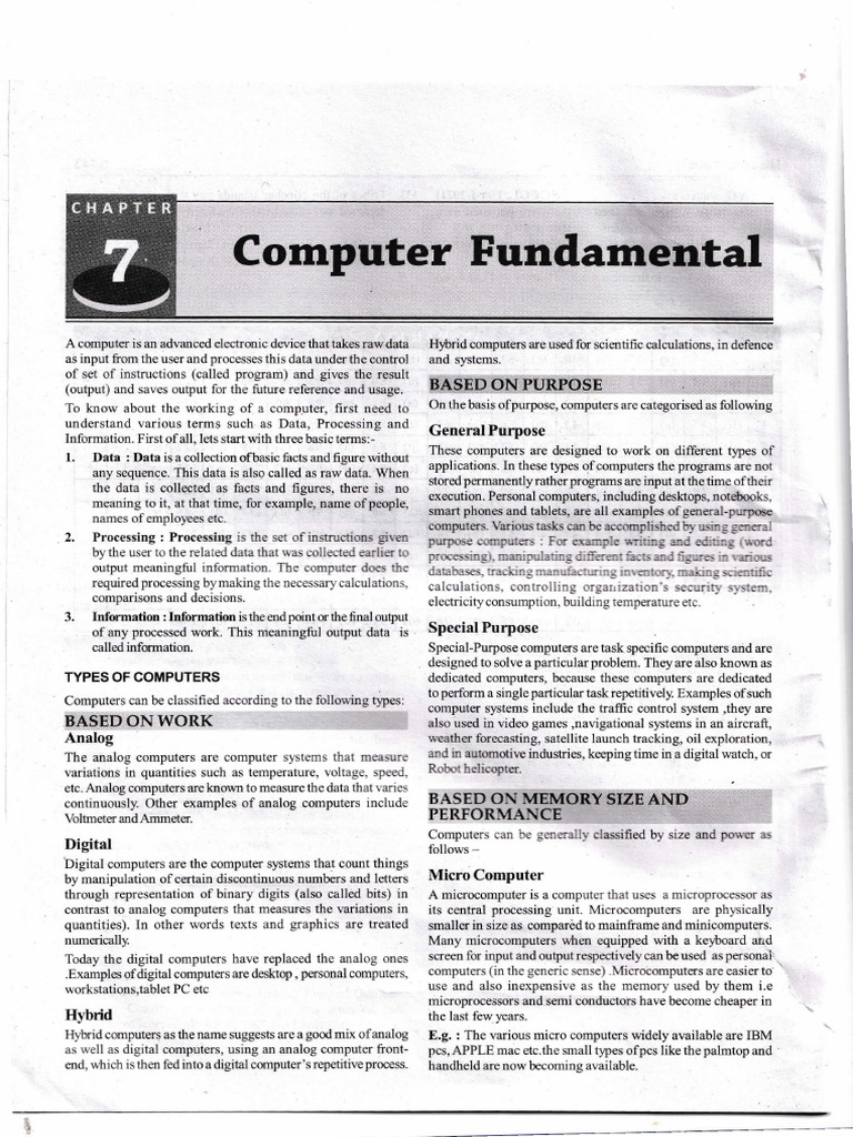 To know about the working of a computer, hrst need to On the basis ofpurpose, computers are categorised as following