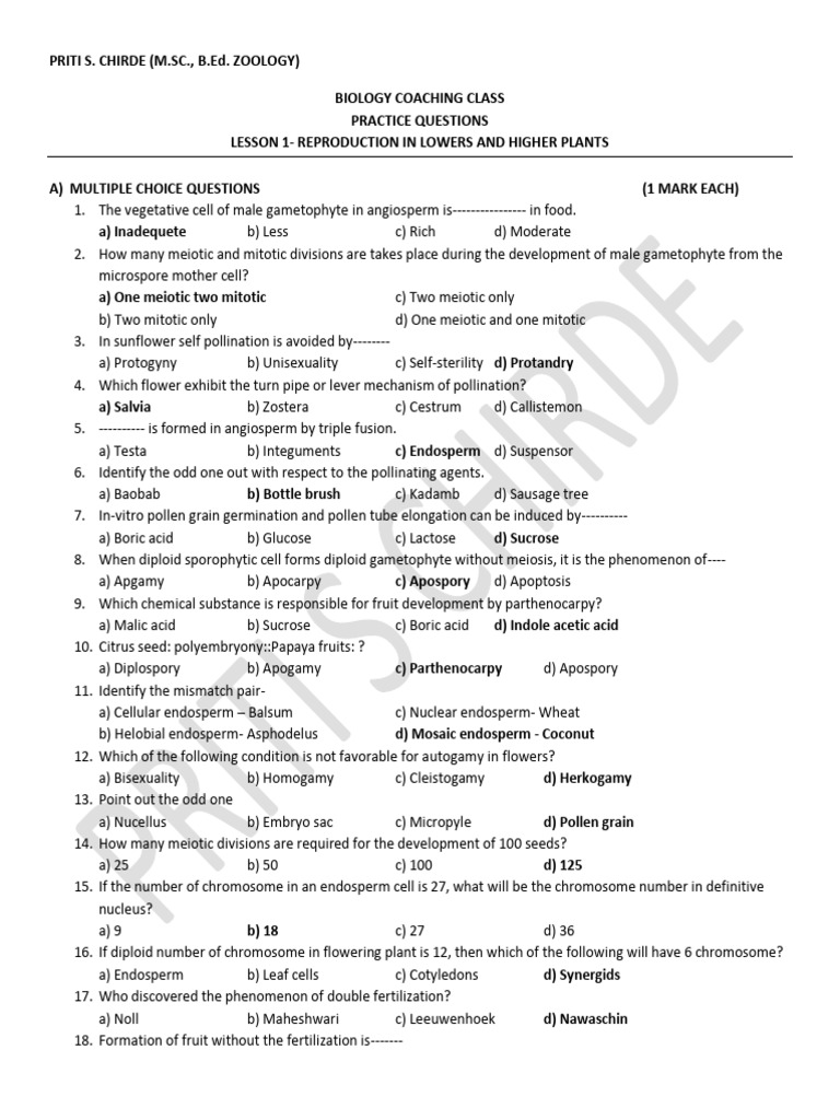 LESSON 1- REPRODUCTION IN LOWERS AND HIGHER PLANTS