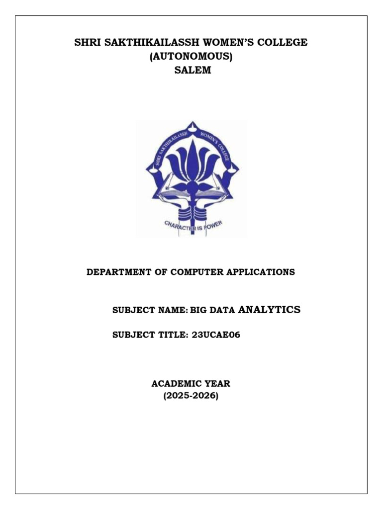 Course Outcomes(Cos) Work with big data tools and its analysis techniques.