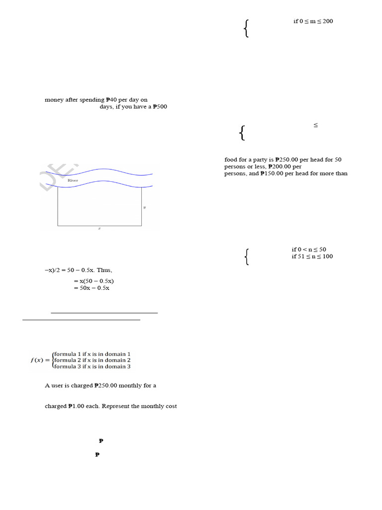 area that can be enclosed, in terms of x. food for a party is ₱250.00 per head for 50