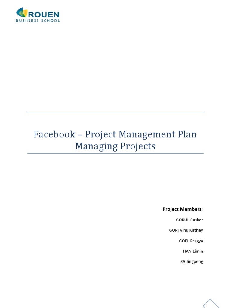 The following members play an important aspect for development and implementation of Facebook. Investors: They provide the financial aid for the members in the team and devices used for developing Facebook. The investors of Facebook are to be routinely informed about the development and execution of the project plan continuously. Project Leader: The project leader has to keep track of all the activities involved in developing the project. He has to administer the finance available, development of the project, testing and end user administrations. He handles all the activity involved from developing till the completion of the project. Project Team Members: Developers: They are technical members of the team involved in developing the project. They will be following the instructions and design given to them by the Technical Architect and reporting their day today activity to Project Leader. Technical Architect: They provide the initial design and implementation methodologies which are to be followed by developers. They administer the technical portion of the project along with the project Leader. Project testers: They are involved in the Unit testing and final testing of the project. They would have to evaluate the functional aspects of the projects periodically and also provide integrated testing report to check if the project is proceeding according to plan. End Users: They are the public. The success of the project depends on their level of subscription and interaction in Facebook. The end users are to be satisfied with the new features of Facebook. Since, more number of users would enable us to generate more revenue with advertising.