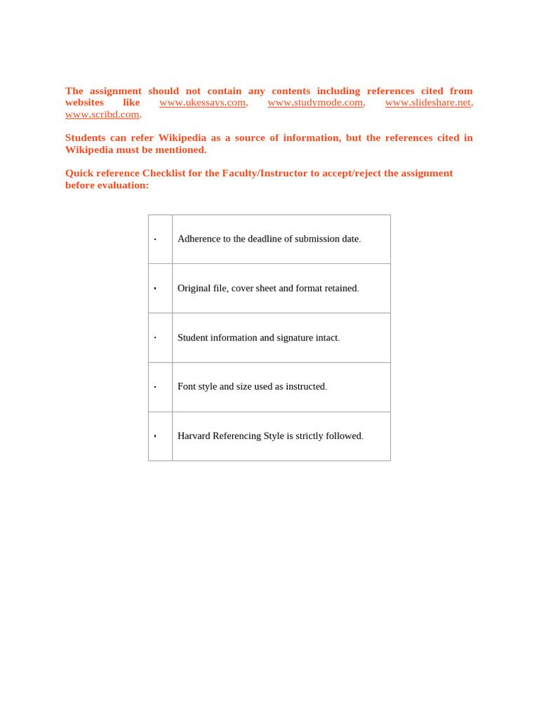 Quick reference Checklist for the Faculty/Instructor to accept/reject the assignment