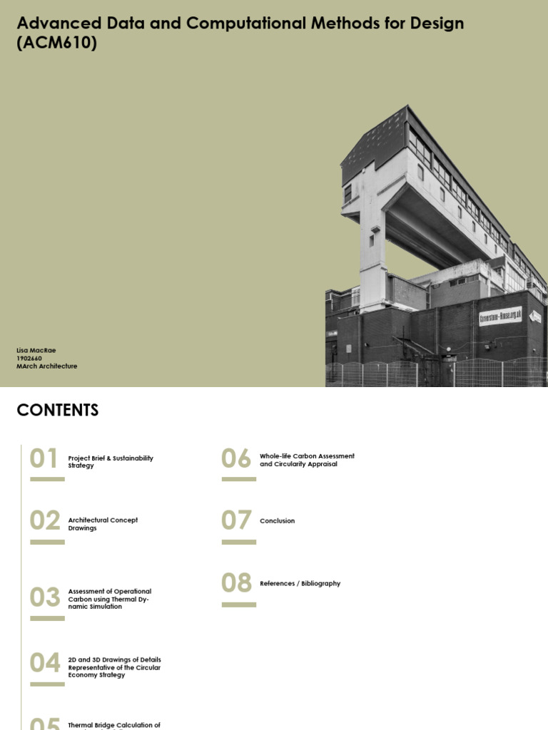 When reflecting on the overall process and delivery of the loose-fit office building, the designer felt the use of certain computer software’s (IESVE, OneClickLCA, HT-