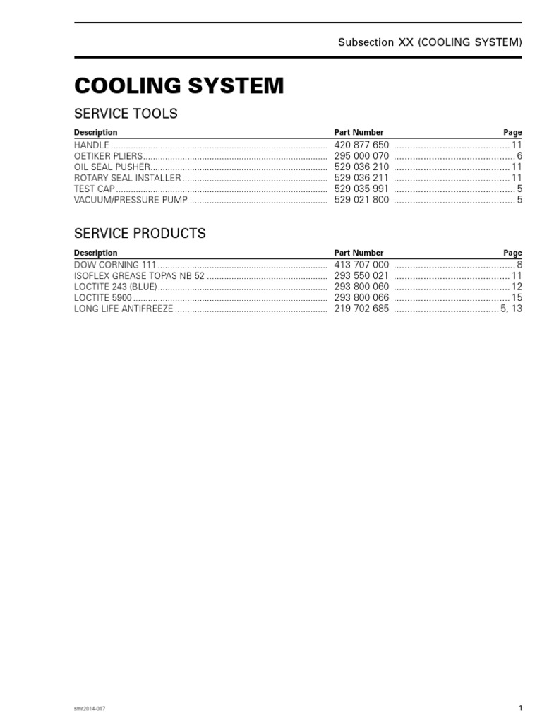 LONG LIFE ANTIFREEZE .............................................................. 219 702 685 ....................................... 5, 13