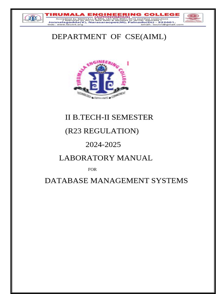 Subject:Data Base Management Systems Lab