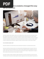• Descriptive analytics is the process of parsing historical data to better understand the