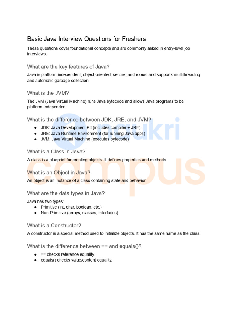 These questions cover foundational concepts and are commonly asked in entry-level job