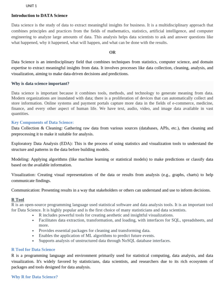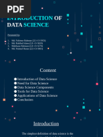 Data science is the study of data to extract meaningful insights for business. It is a multidisciplinary approach that