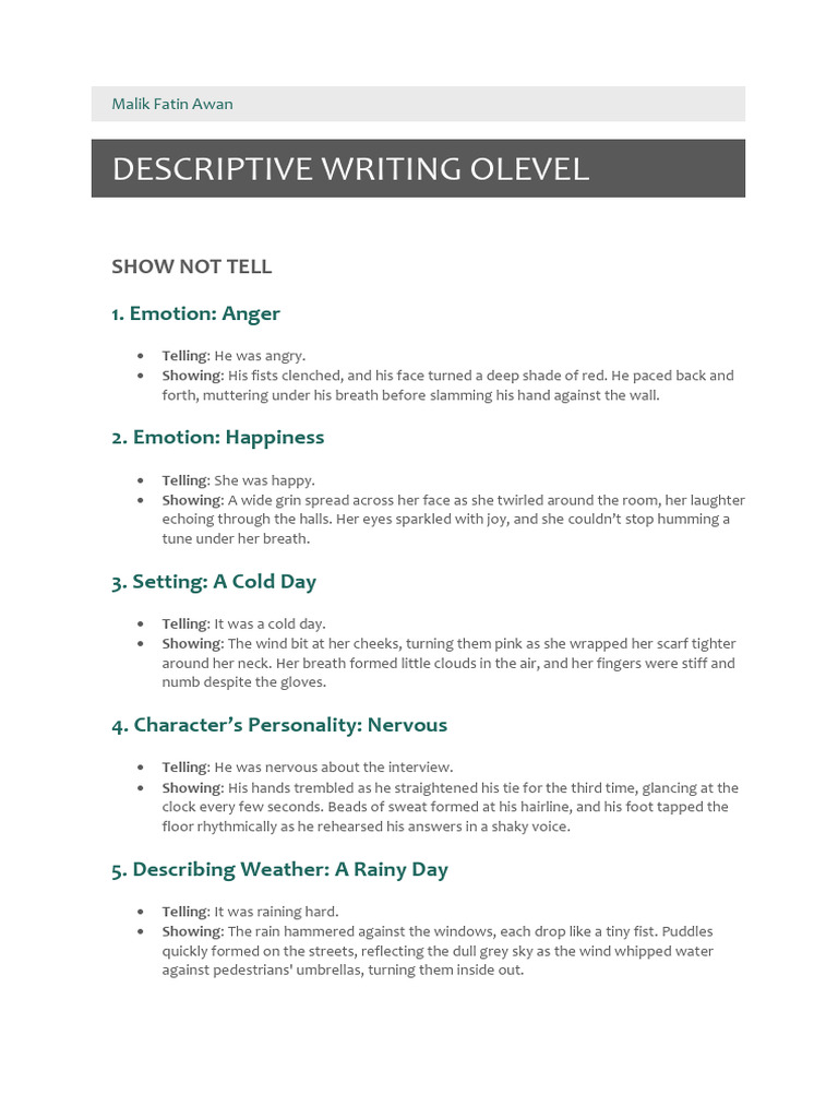 20 BEST PHRASES FOR O LEVEL NARRATIVE AND DESCRIPTIVE