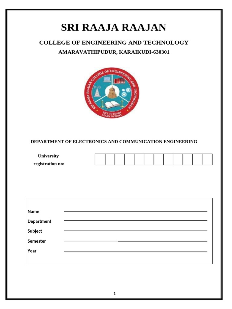 Website: www.sriraajaraajan.in. E - Mail: srrcet2010@gmail.com. Ph: 04565-234230