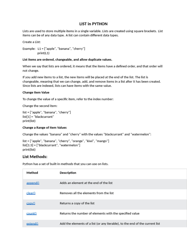 changeable, meaning that we can change, add, and remove items in a list after it has been created.
