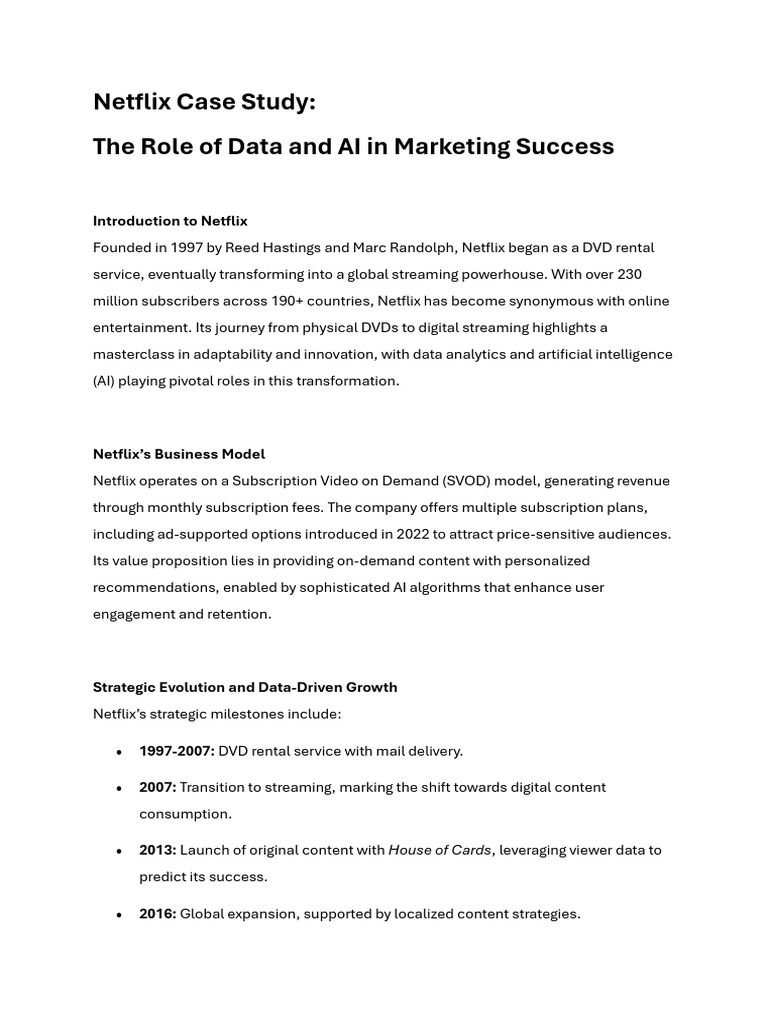 Netflix's marketing success is deeply rooted in its use of AI and machine learning. Key