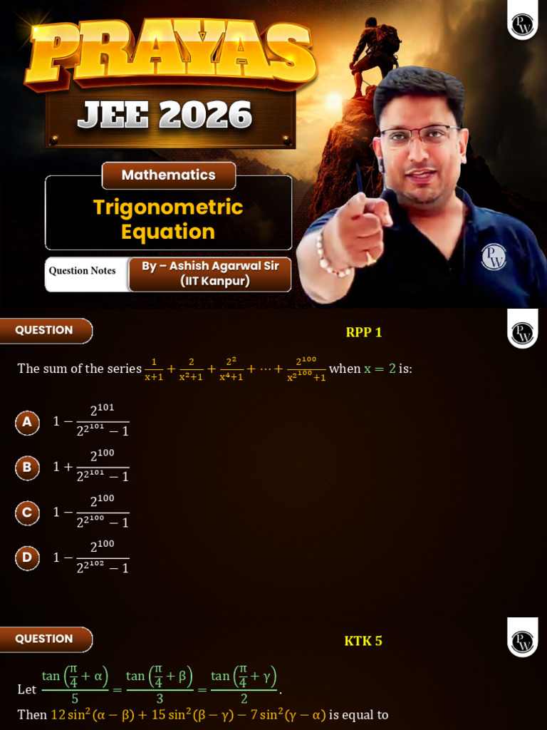 The sum of the series + 2 + + ⋯+ 100 when x = 2 is: